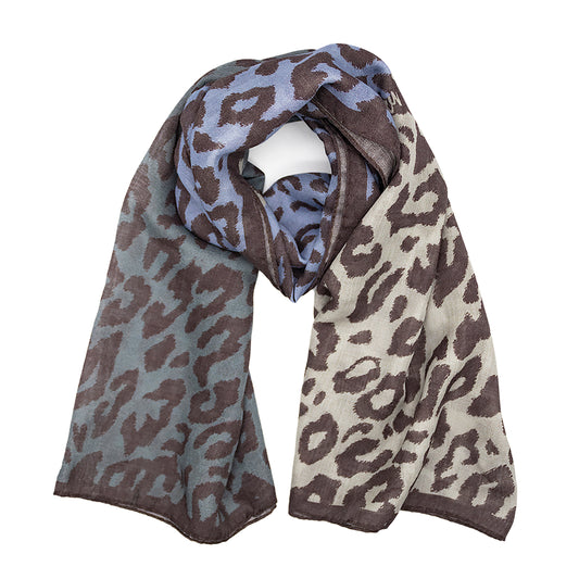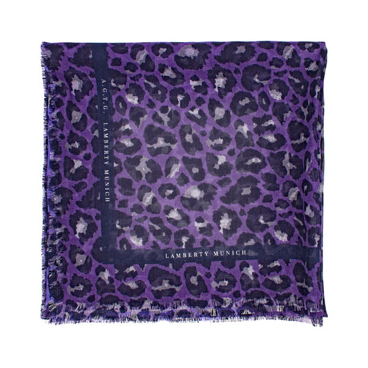 Savannah Leopard - Blue - Maxi Cube - Silk & Wool Scarf