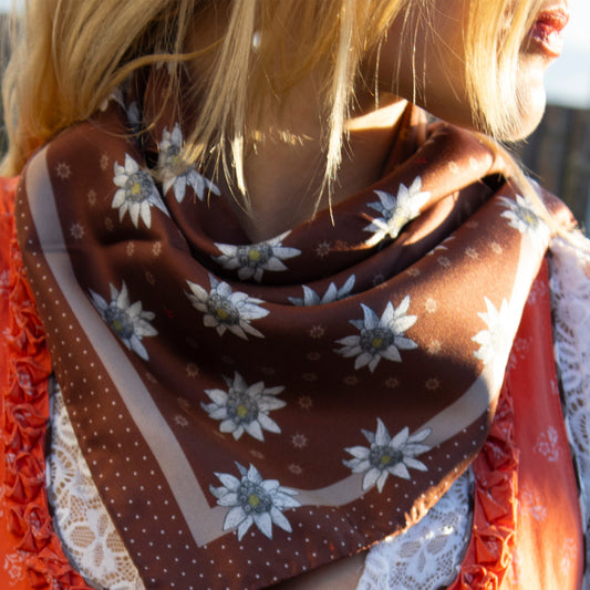 Tuch 70 Midi Alpine Edelweiss & Ladybug - Silk Twill Scarf Espresso Brown