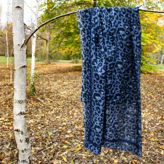 Schal 135 Savannah Leopard - Blue - Maxi Cube - Silk & Wool Scarf