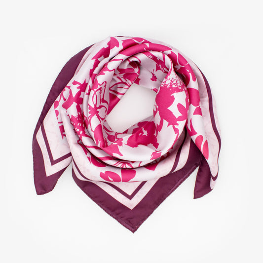 Tuch 70 Floral Lino Silk Scarf - Midi Silk Twill Scarf Pink-Purple
