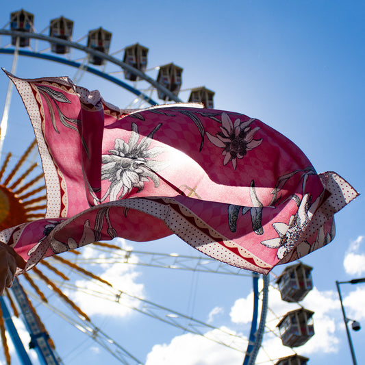 Munich is a city where fashion and tradition go hand in hand. From the luxury boutiques of Maximilianstraße to the traditional beer gardens and the timeless beauty of Dirndl and Trachten, the city’s style is as diverse as it is iconic. Our silk scarf collection captures this spirit, blending modern design with Bavarian heritage. Worn as a chic everyday accessory, the silk & wool scarves bring a touch of Munich flair to the street, while also pairing perfectly with Dirndl and Trachten dresses: The ideal finishing touch for Oktoberfest or festive occasions.