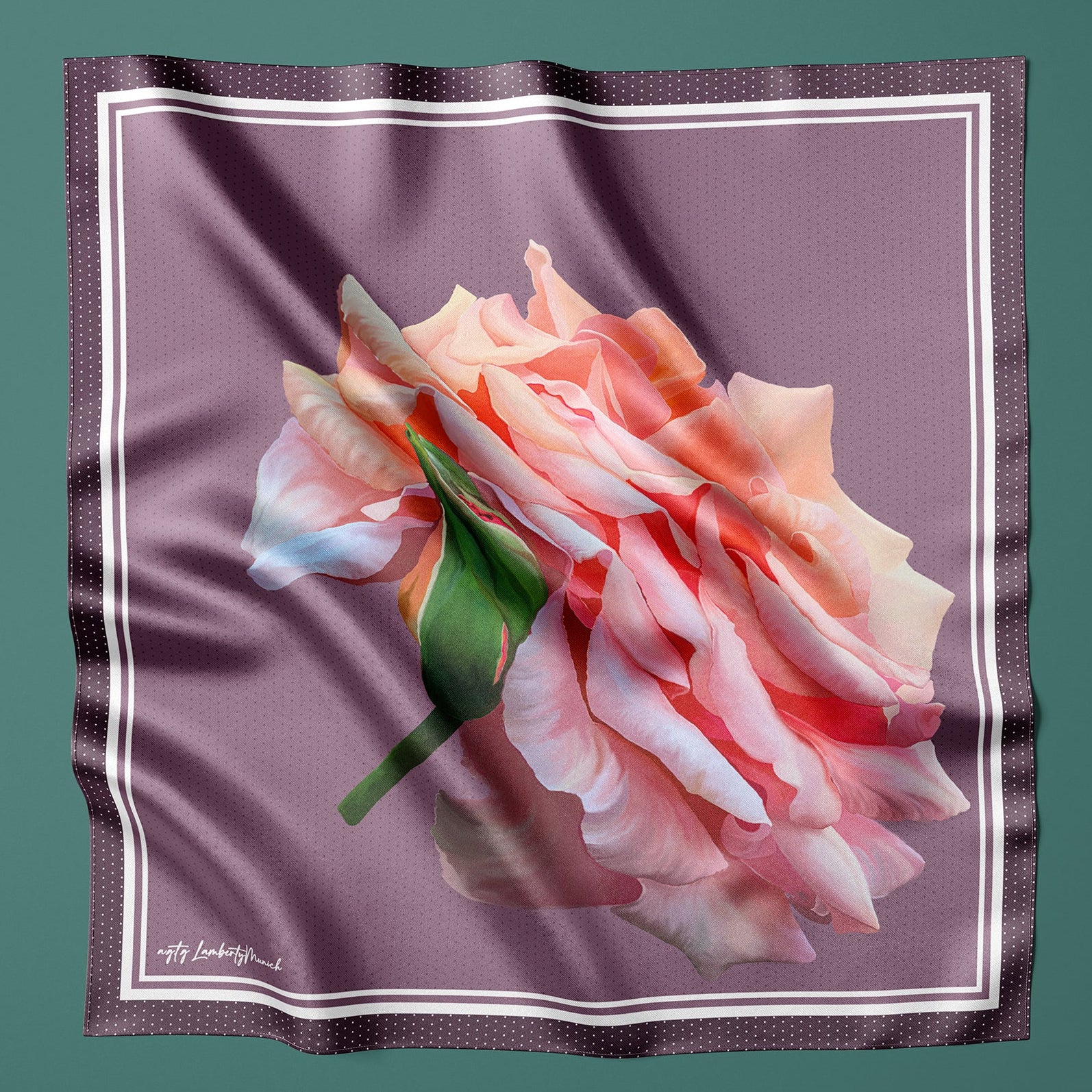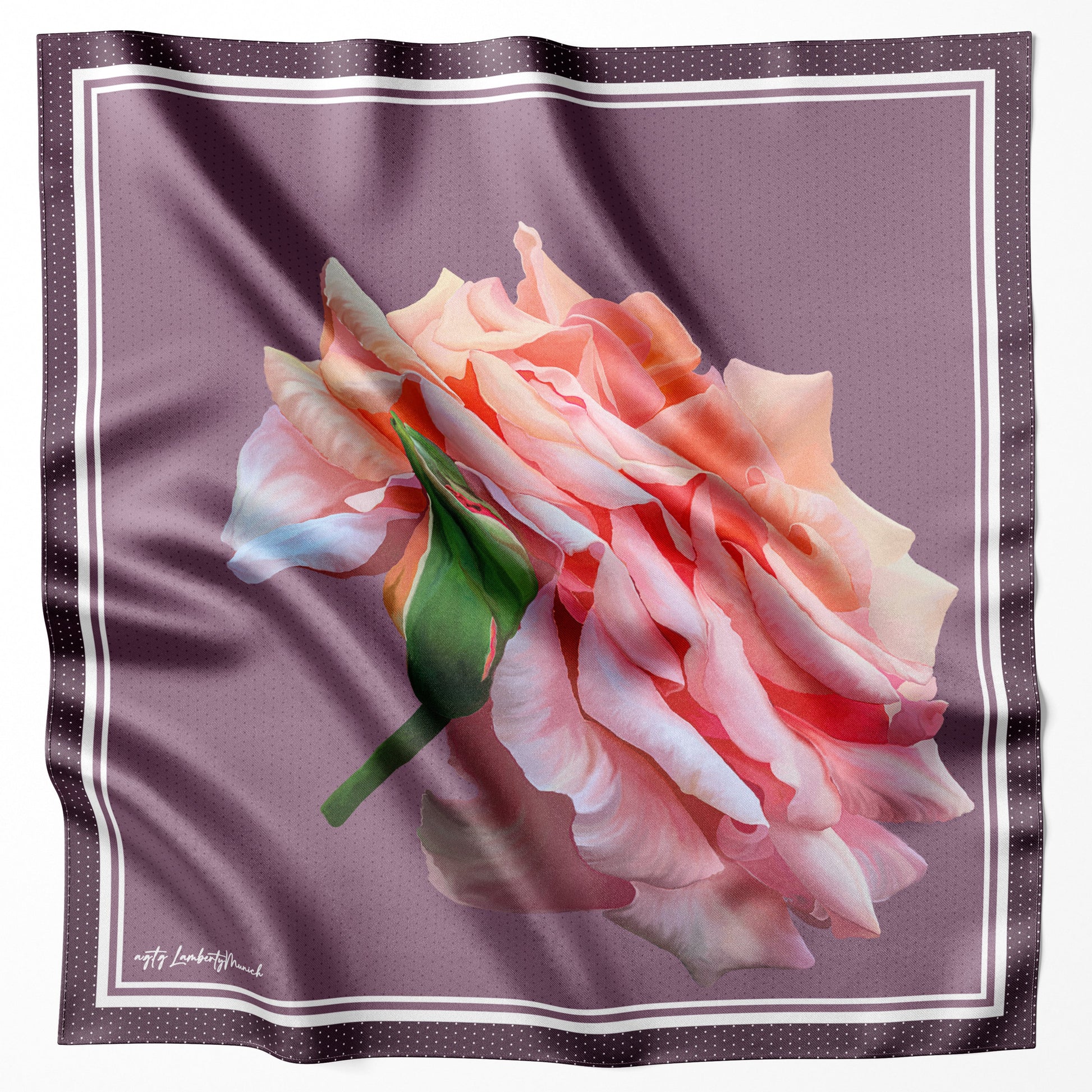 Entdecken Sie die außergewöhnliche Detailfülle dieser limitierten Edition. Handbemalt und gedruckt auf 100 % Seidentwill, 90 cm x 90 cm.